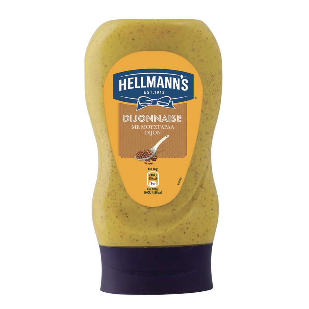 Η Hellmann's Dijonnaise αποτελεί συνδυασμό Μουστάρδας και Μαγιονέζας Η πρακτική συσκευασία της διευκολύνει την χρήση της.