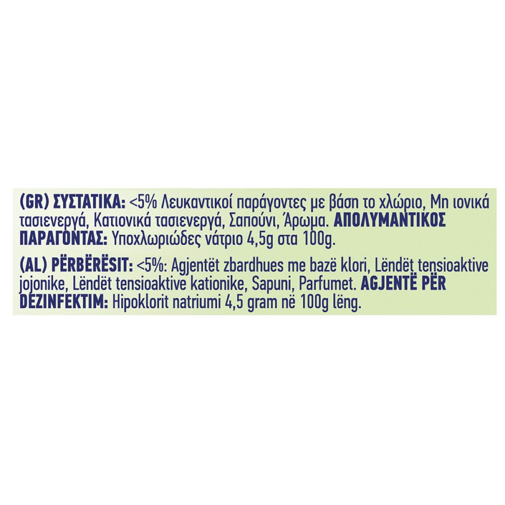 Η Χλωρίνη® KLINEX Ultra Protection Fresh προσφέρει προστασία από τα μικρόβια και αξεπέραστη απολύμανση χάρις στην ενισχυμένη σύνθεσή της με τη μοναδική και κατοχυρωμένη τεχνολογία C-Tac. Λίγες μόνο σταγόνες εχουν τη δύναμη να λευκανουν, να καθαρίσουν τη βρωμιά και να απολυμάνουν σε όλο το σπίτι. Η απολυμαντική δράση της Χλωρίνης® KLINEX Ultra Protection διαρκεί περισσότερο καθώς προσκολλάται καλύτερα* στις επιφάνειες και κάθε της σταγόνα σκοτώνει όλους τους τύπους ιών, βακτηριδίων και μικροβίων.