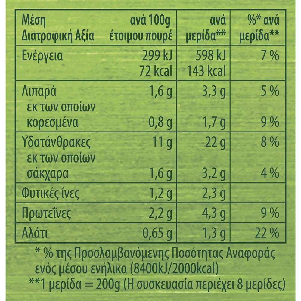 Ενέργεια: 1615 kJ / 381 kcal