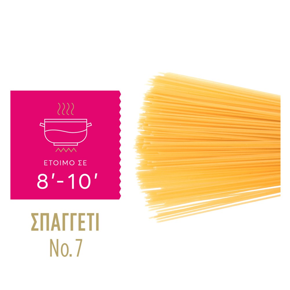 Το Σπαγγέτι Νο7 είναι λίγο πιο λεπτό ζυµαρικό από το Νο6 και πολλοί το προτιµούν γι`αυτό. Δοκιµάστε τα και τα δύο και αποφασίστε ποιό σας εκφράζει καλύτερα!