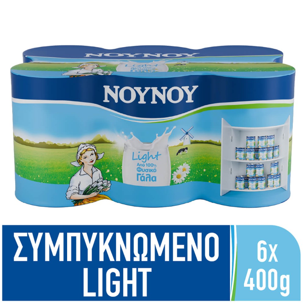 To NOYNOY Light παράγεται από 100% αγελαδινό γάλα άριστης ποιότητας, με απλή παραδοσιακή συνταγή, προσφέροντας τη θρεπτική αξία του γάλακτος και την υπέροχη γεύση ΝΟΥΝΟΥ με λιγότερα λιπαρά. H πλήρως αεροστεγής συσκευασία του από λευκοσίδηρο αποτελεί μια ποιοτική, υγιεινή και οικολογική πρόταση, που προστατεύει και διαφυλάσσει τις διατροφικές αξίες του γάλακτος, χωρίς την προσθήκη συντηρητικών.