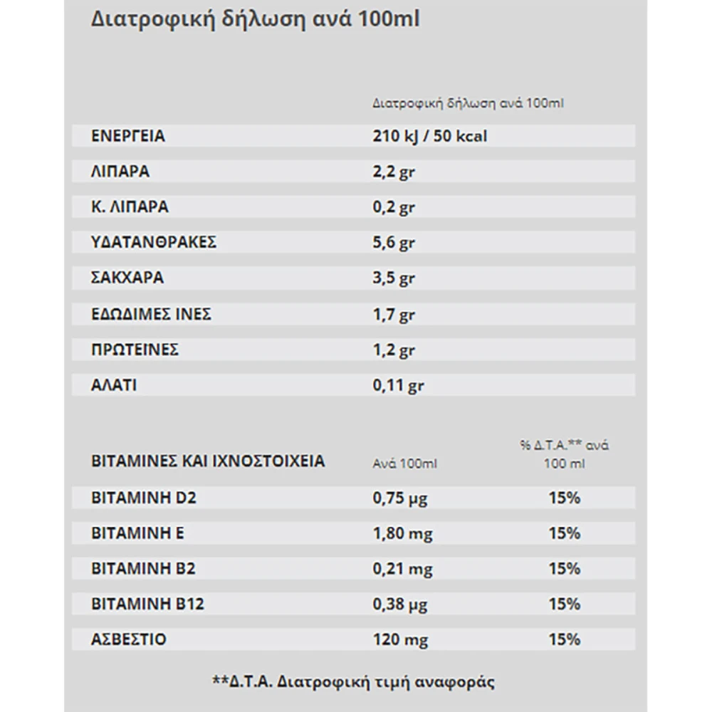 ΔΙΑΤΡΟΦΙΚΑ ΣΤΟΙΧΕΙΑ (ανά 100ml)