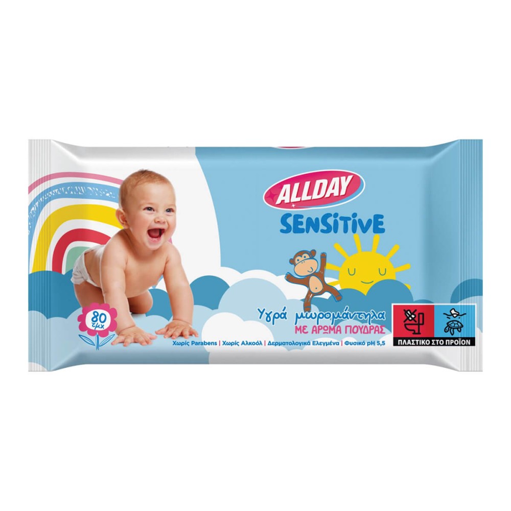 Allday Μωρομάντηλα Sensitive 80τμχ
