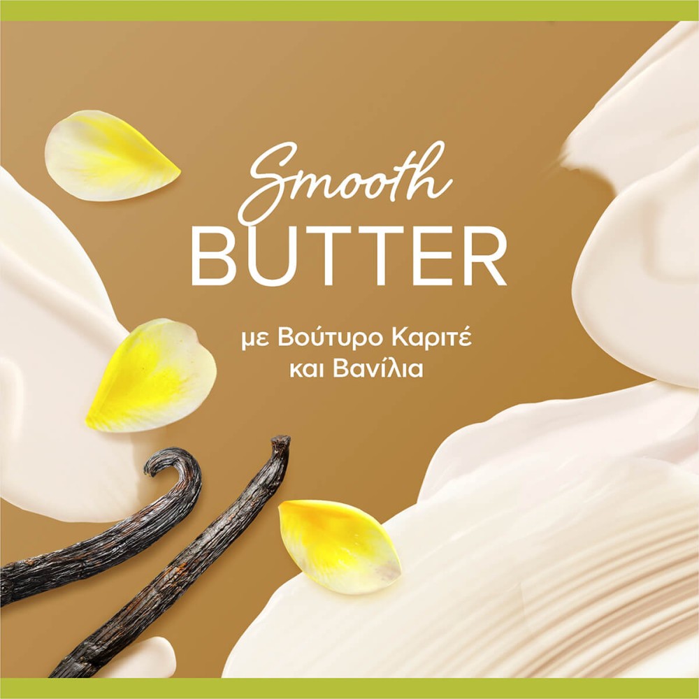 Το αφρόλουτρο Palmolive Thermal Spa Smooth Butter με βούτυρο καριτέ και βανίλια προσφέρει απαλή φροντίδα και αίσθηση χαλάρωσης σε κάθε χρήση. Η κρεμώδης του υφή καθαρίζει αποτελεσματικά την επιδερμίδα, αφήνοντάς την απαλή και ενυδατωμένη, ενώ το ζεστό και ευχάριστο άρωμά του χαρίζει στιγμές ευεξίας και αναζωογόνησης. Ιδανικό για καθημερινή χρήση, μετατρέπει το ντους σε μια απολαυστική εμπειρία περιποίησης.