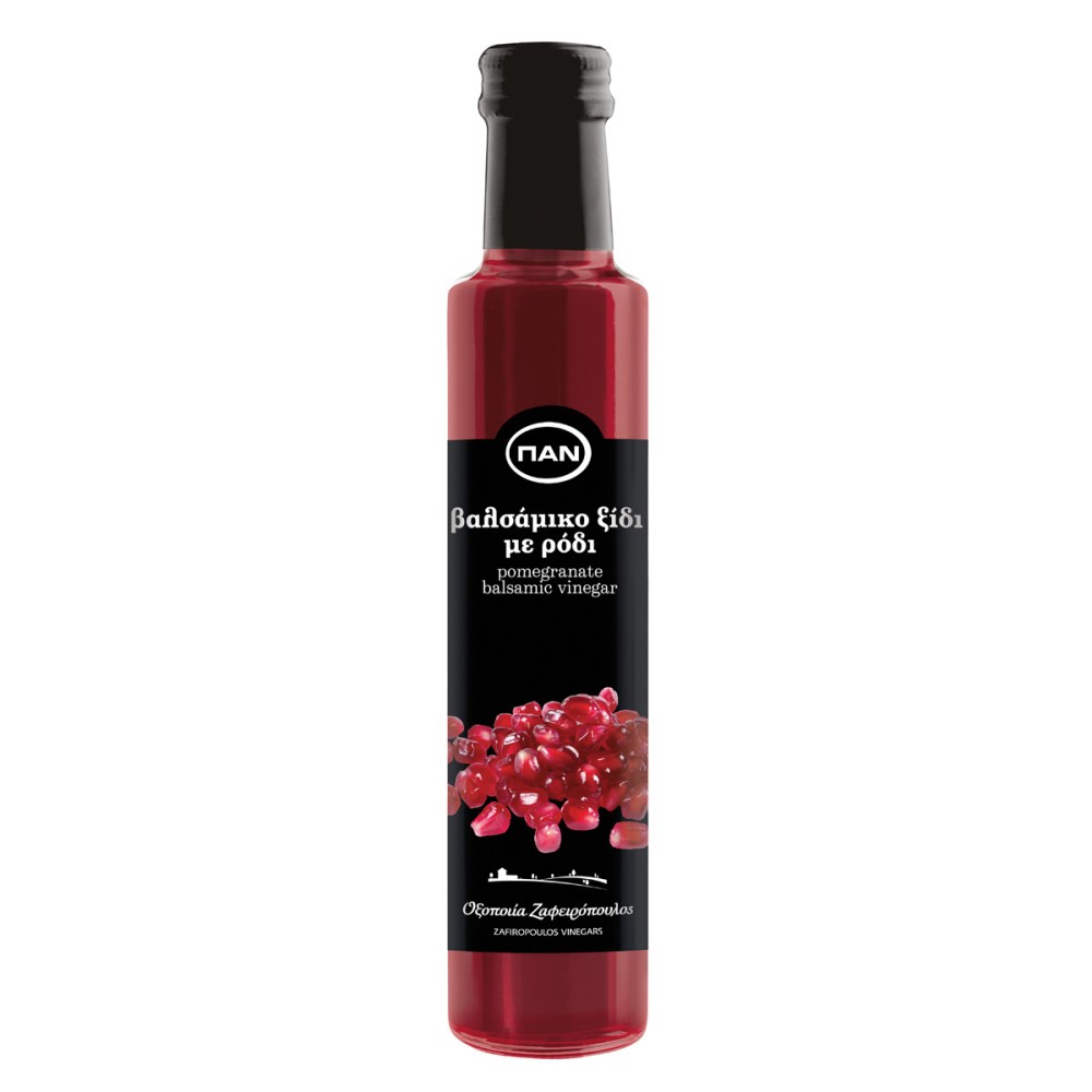 Άρτυμα βαλσάμικο ξίδι με χυμό ροδιού, με πλούσια και γλυκόξινη γεύση, ιδανικό για σαλάτες και δημιουργικές συνταγές.