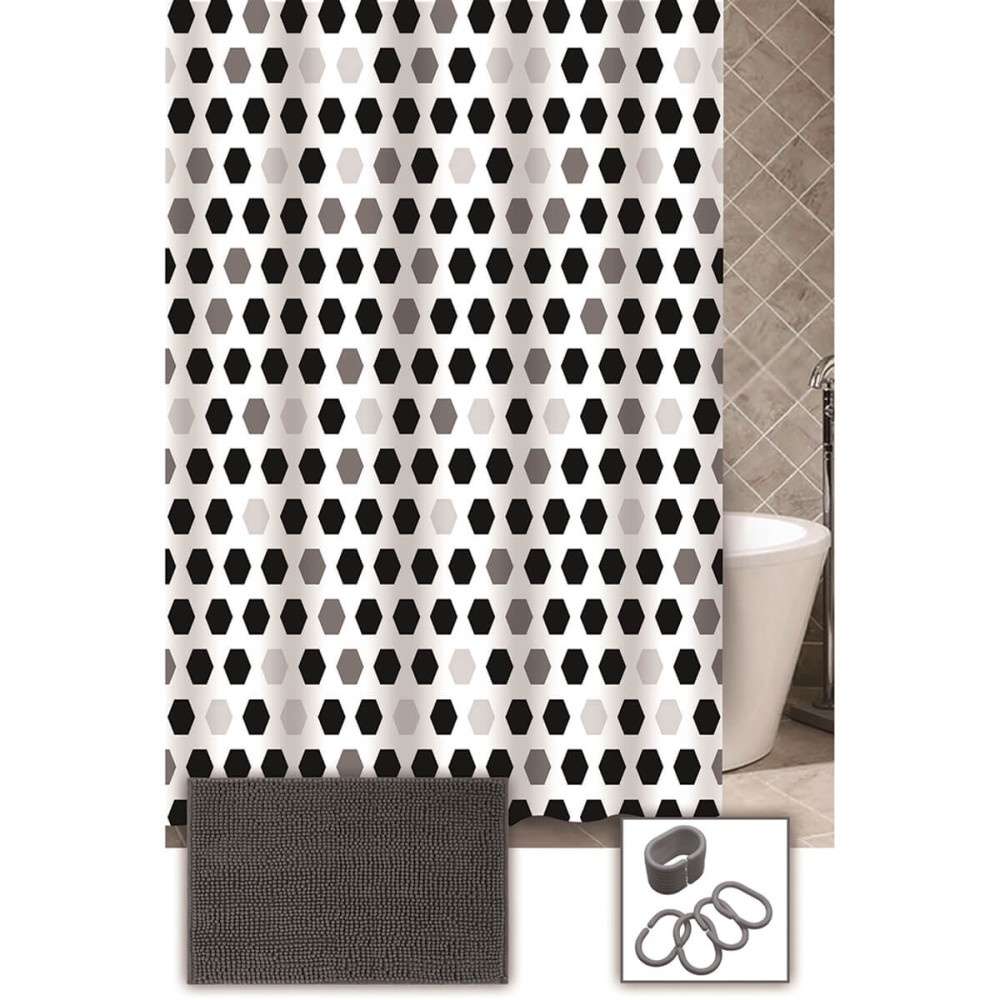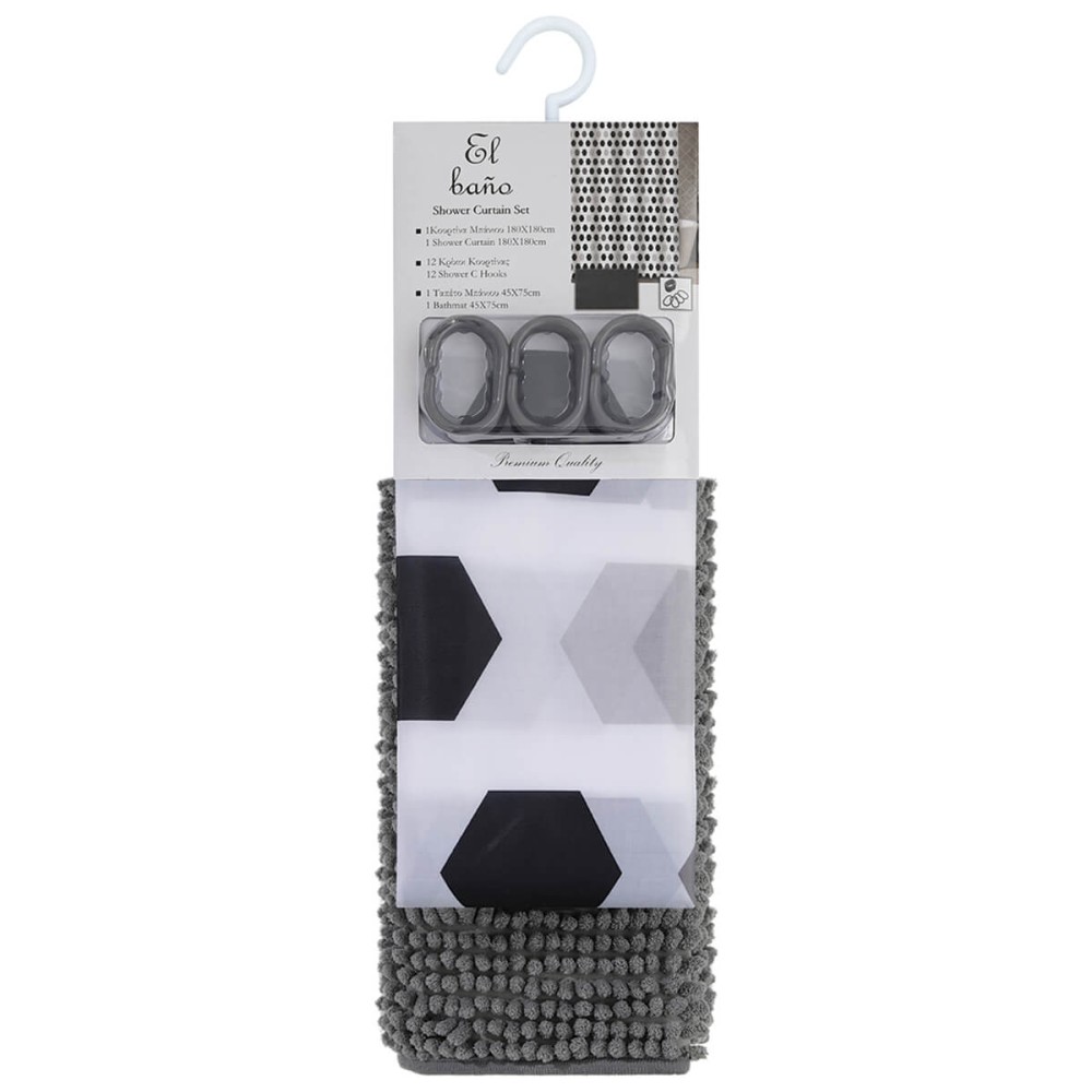 Σέτ Κουρτίνα 180x180cm Ταπέτο Μπάνιου 45x75cm Hexagon